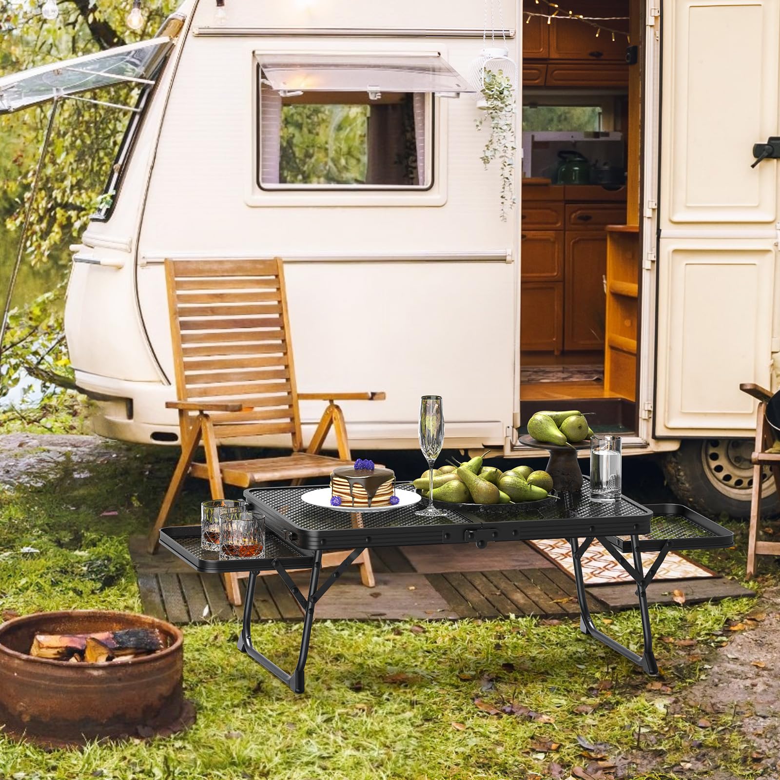 3 FT Portable Picnic Table with Wing Panels & Mesh Tabletop