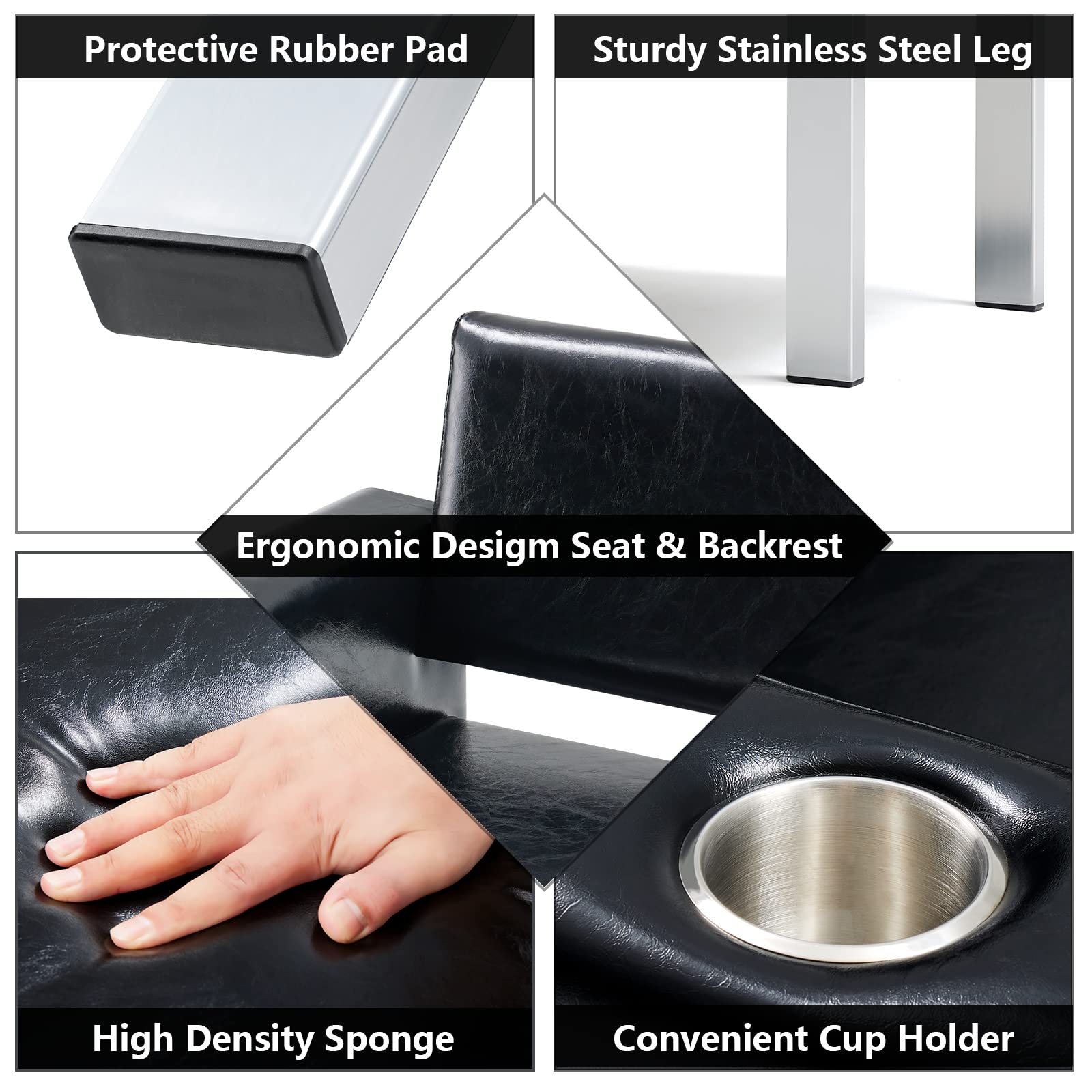 3. Easy to Clean: The waiting room bench is covered with PU leather, it is easy to clean and maintain even if it is placed in a public place,you just wipe the dust and dirt with a wet towel.