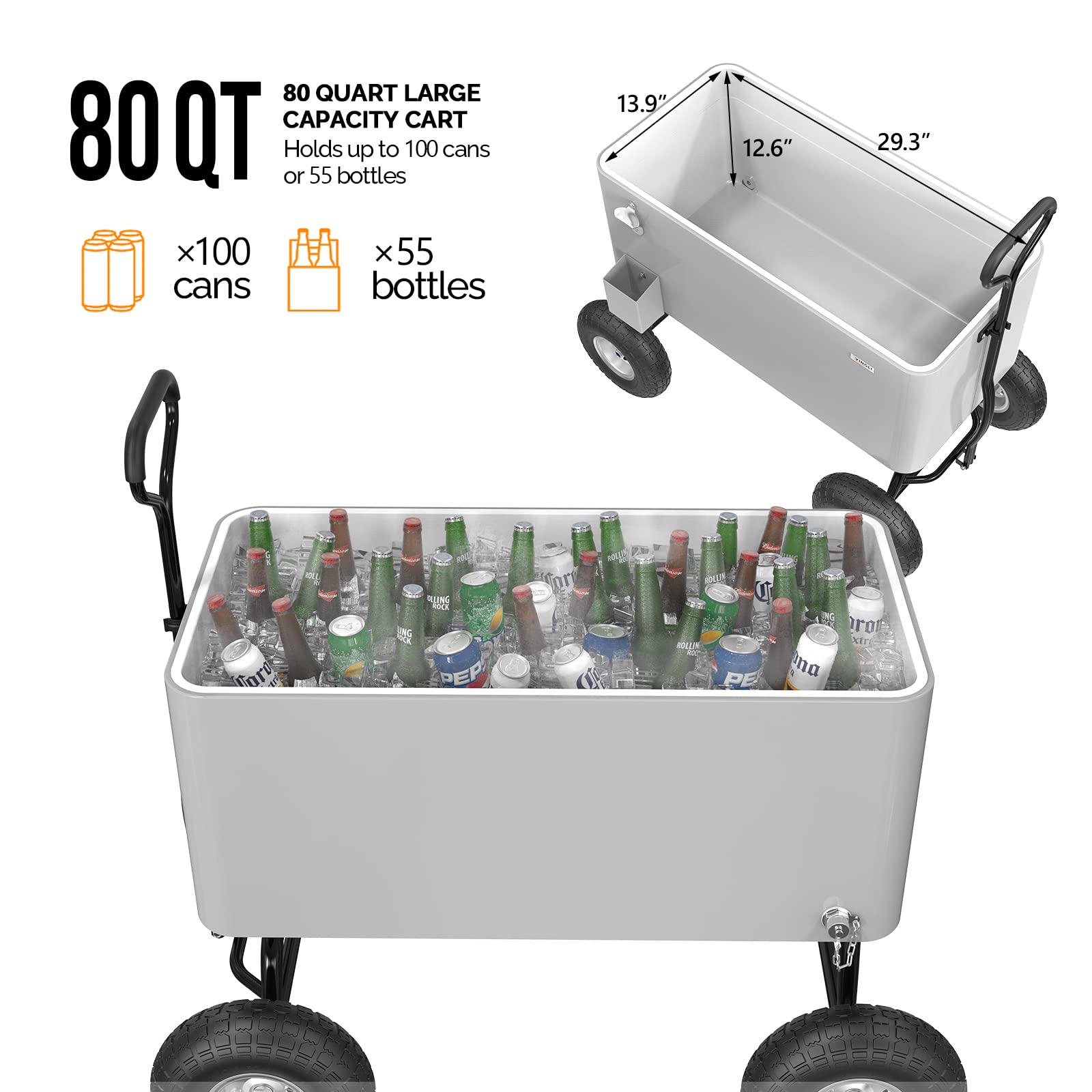 4. 80 Quart Large Capacity: Holds up to 80 quarts (20 gallons) 96 aluminum cans; Whatever size party or gathering you’re looking to host, this cooler can help you accommodate your thirsty guests.
