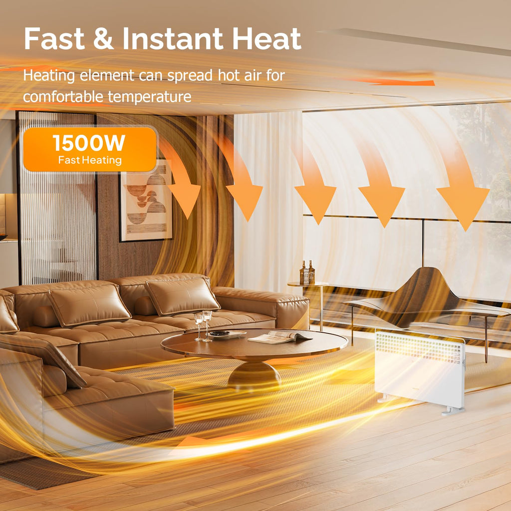 1. 1,500 W High Power: Experience powerful heating with our 1,500 W panel heater, designed to quickly warm up your space. Perfect for rooms up to 400 sq. ft., it delivers fast, efficient comfort the moment you need it. Stay cozy all winter long—without the wait!.