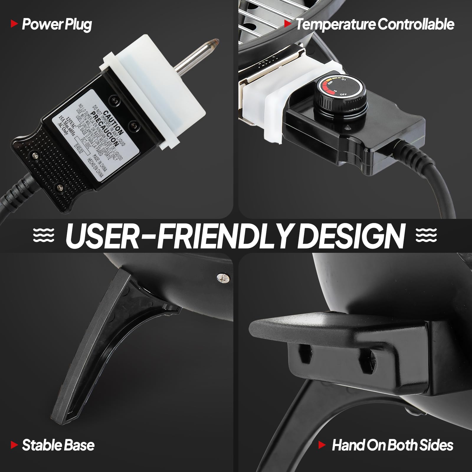 4. User-friendly Design: The electric grill comes with a anti-scalding handle and supporting leg, ensuring safe and comfortable operation without the risk of burns. This allows you to easily control the cooking process with confidence. Additionally, the UL-certified plug provides reliable protection against electrical leakage, giving you peace of mind while you cook. Whether you're a novice or an experienced chef, this oven is designed to make cooking both easy and enjoyable, all while keeping safety at the forefront.