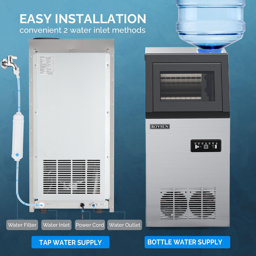 4. Wide Application: Built-in or freestanding application.Fulfills commercial, households ice-making needs, great for home, restaurant, bar, pantry,hotel, grocery store, cafe, supermarket, etc.
