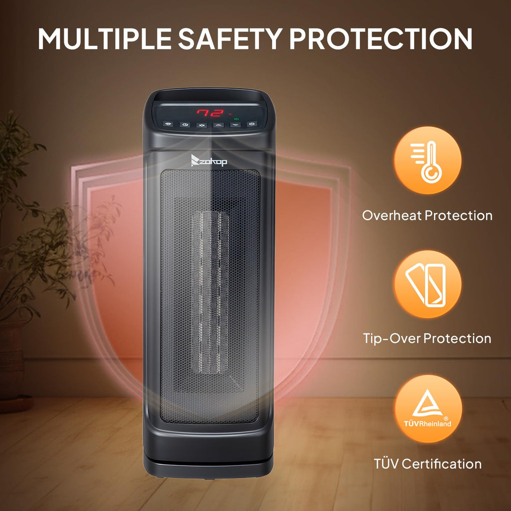 3. Wide Oscillation & Convenient Remote: Control all functions, like temperature, timer, oscillatio, from your couch with the included remote. The 70° wide-angle oscillation ensures even heat distribution throughout your space .