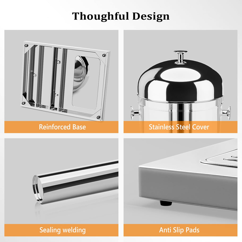 4. Goodbye to Leaking: Equipped with upgraded spout ,will fall vertically and will not splash and no leaks, allowing guests to pick up their drinks freely. And the drip tray of this beverage dispenser can effectively help reduce beverage spattering and keep the table top clean.
