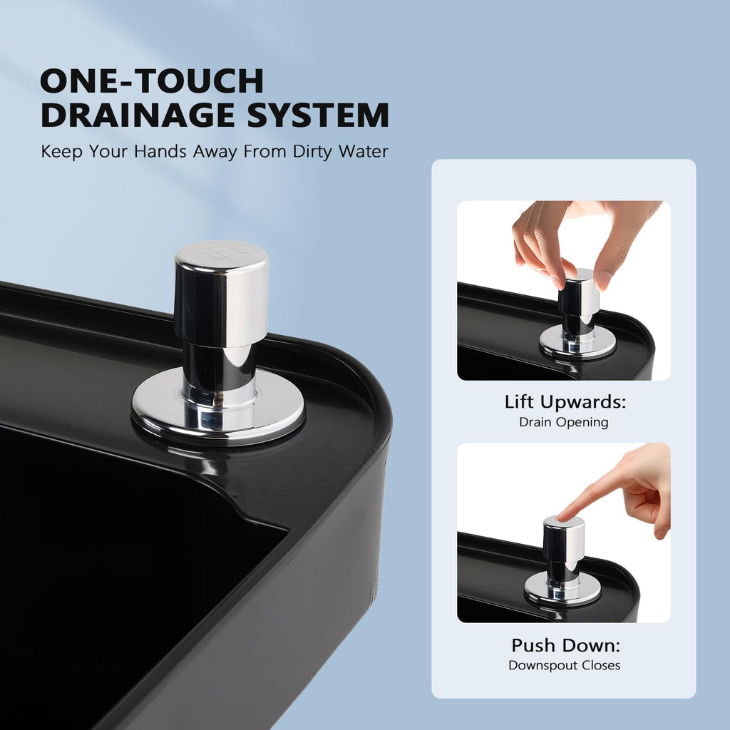 4. Convenient Push-Button Drain: A simple press of the ergonomic drain button starts quick water release without messy handles or knobs. The intuitive design allows one-handed operation while keeping your other hand free.