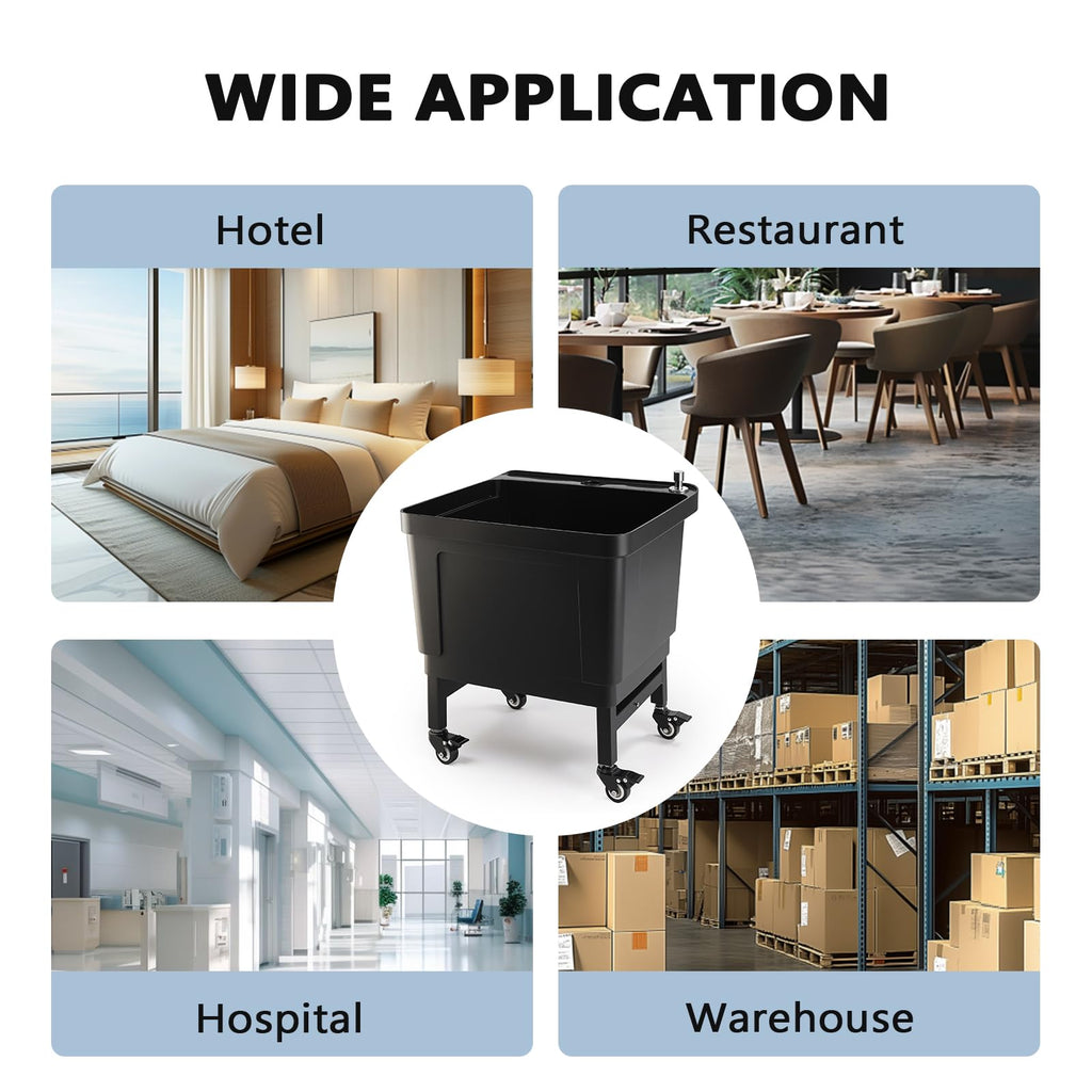 3. Extra-Large Capacity Basin: The generously sized 150lbs mop basin handles multiple mops and large cleaning tasks with ease. No more constant water changes - this spacious design maximizes efficiency for busy commercial environments.