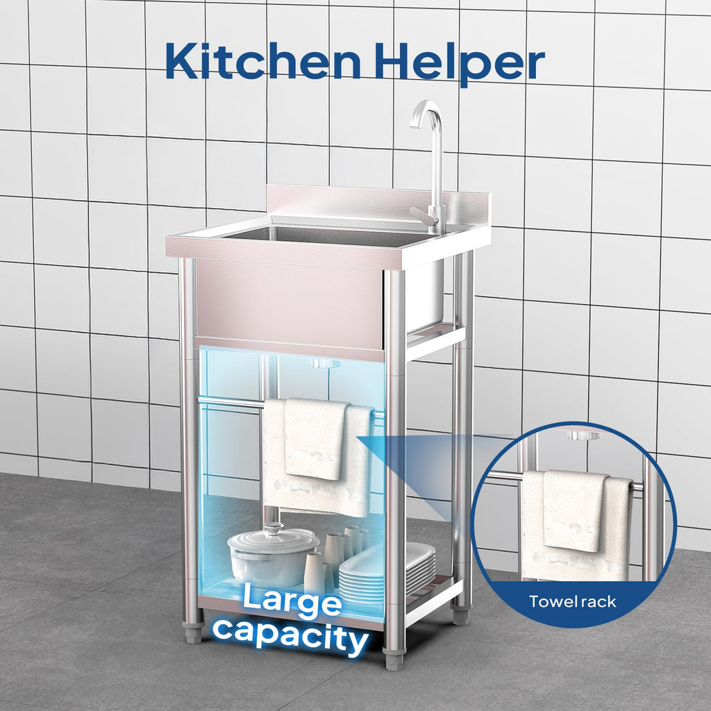 5. Multi-Purpose for Home & Commercial Use: Suitable for restaurants, workshops, garages, and outdoor washing areas, this stainless steel single bowl sink is a practical and durable solution for any cleaning or prep environment.