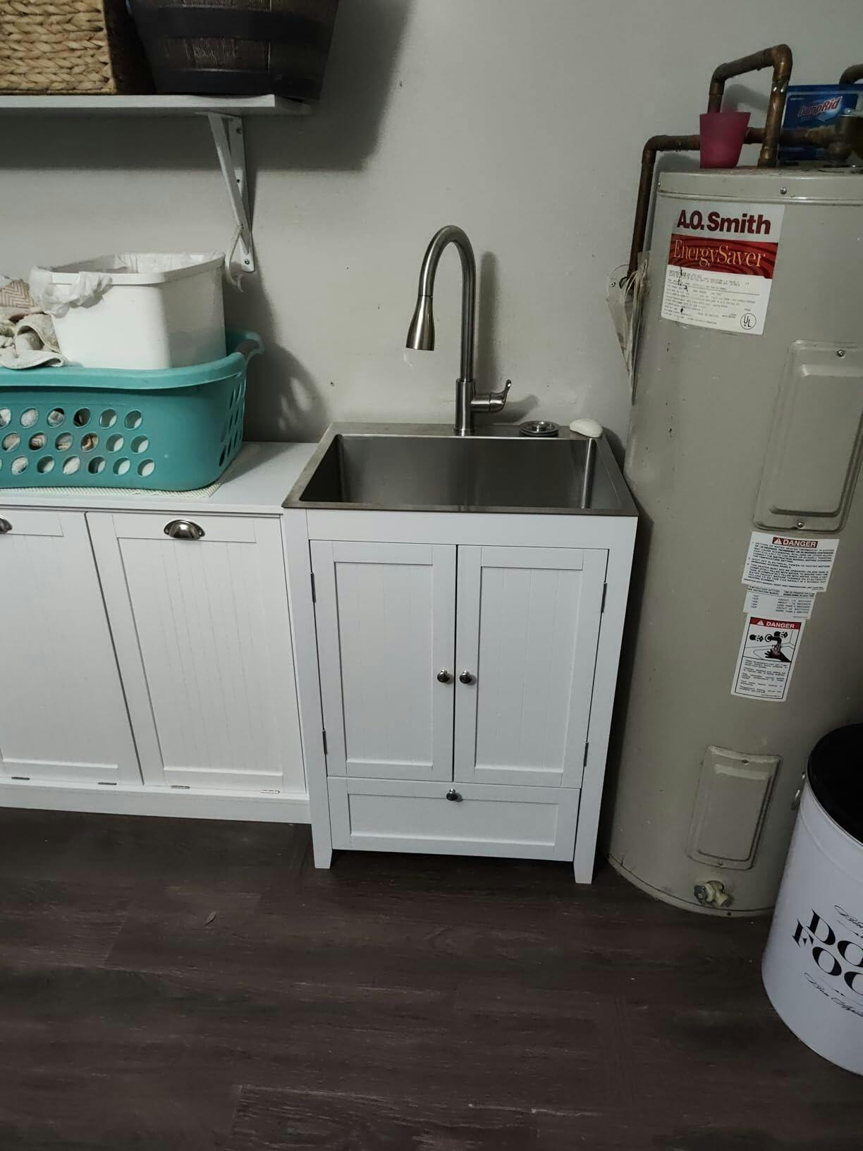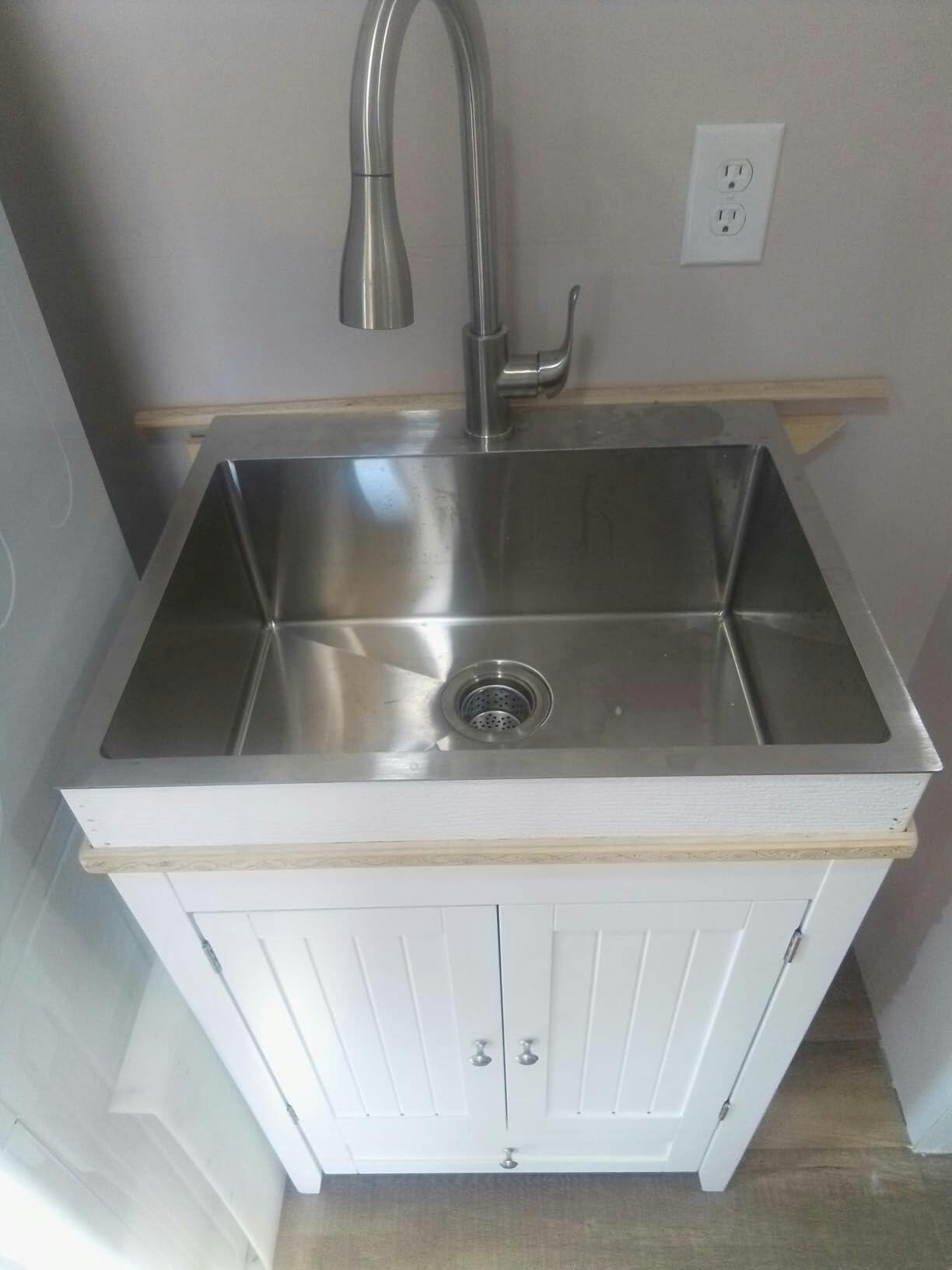 1. Kitchen Sink Cabinet Combo: Do you want to remodel your laundry room? This laundry sink with cabinet integrated is a good choice for you. It is perfect for using in utility room, kitchen, garage, workshop, art studio, basement, RV and vacation cabin, or small spaces. Note: Sink and cabinet will be shipped in 2 boxes.