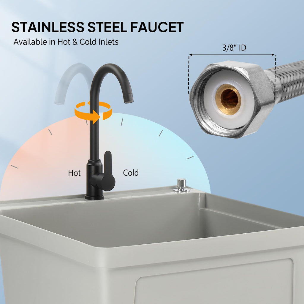 4. Multi-functional Applicable Scenarios: This multifunctional practical sink is not only suitable for laundry rooms, but can also easily integrate into various scenarios such as basements, garages, and utility rooms, making it an ideal choice for home cleaning, pet care, and daily miscellaneous tasks.