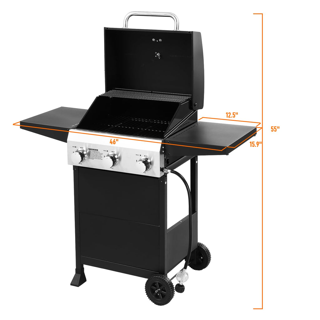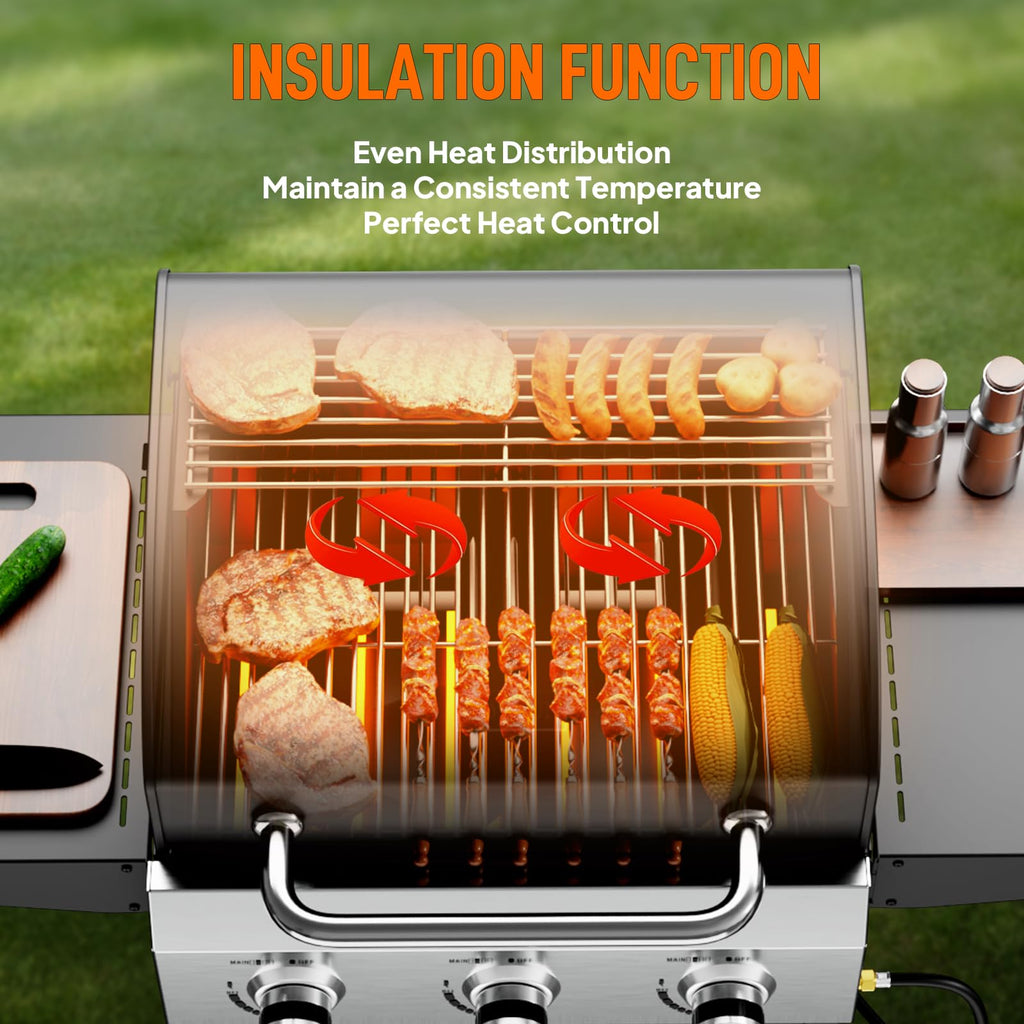 1. Uniform Heat: This propane grill is equipped with 3 independent stainless steel grill burners, providing a total 36000 BTU of grill. You can also adjust the flame size as needed and provide multiple grilling options. Whether it's grilled eggs, pancakes, grilled cheese, or steak, you can easily complete it.
