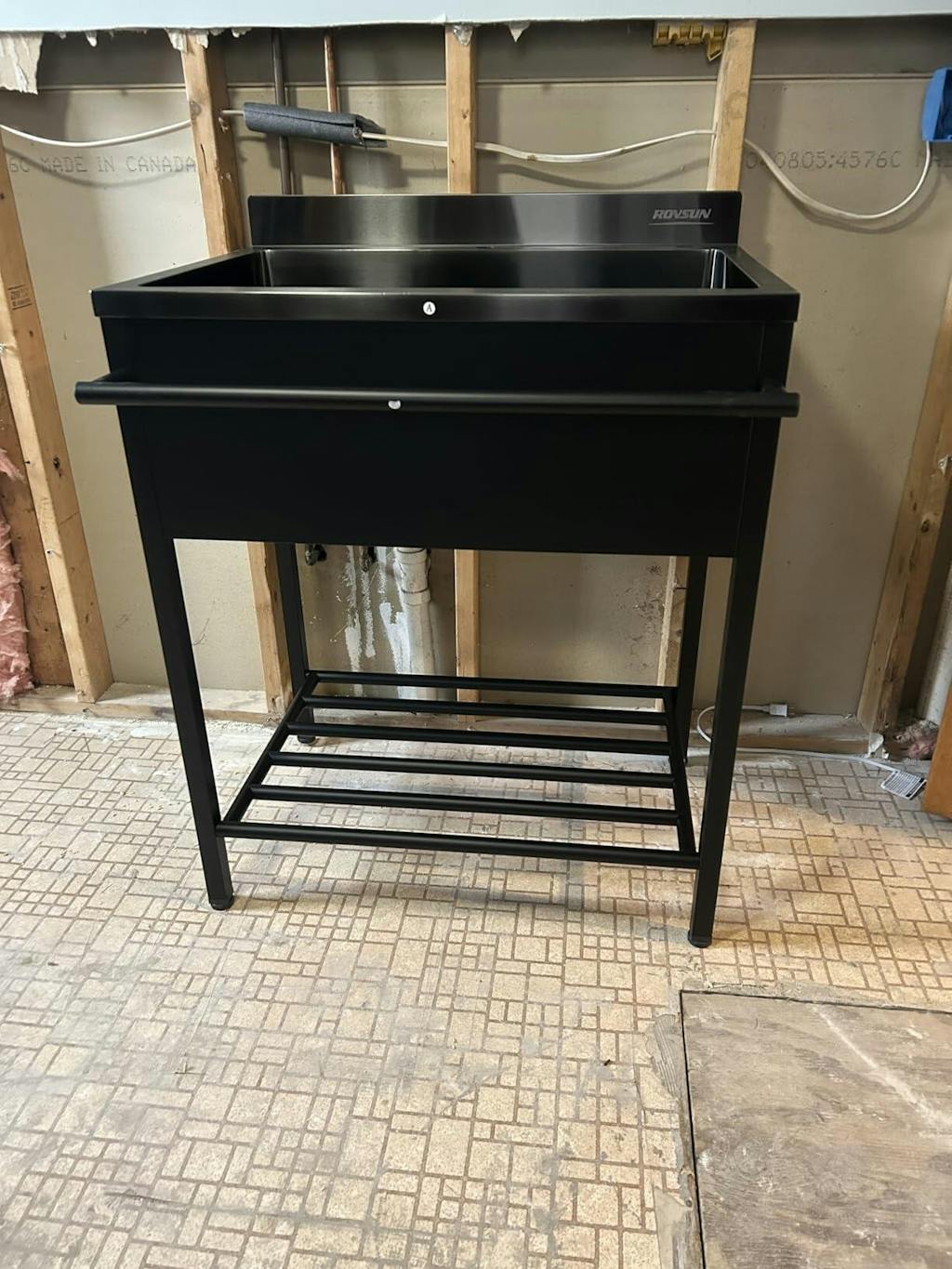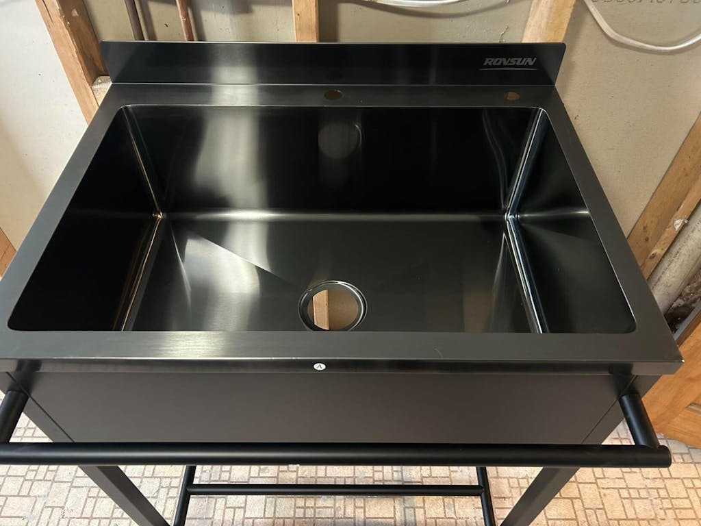 1. Single Bowl Stainless Steel Sink: Made from 304 stainless steel, this utility sink is durable and rust-resistant, with a black powder-coated finish for added durability and aesthetics.