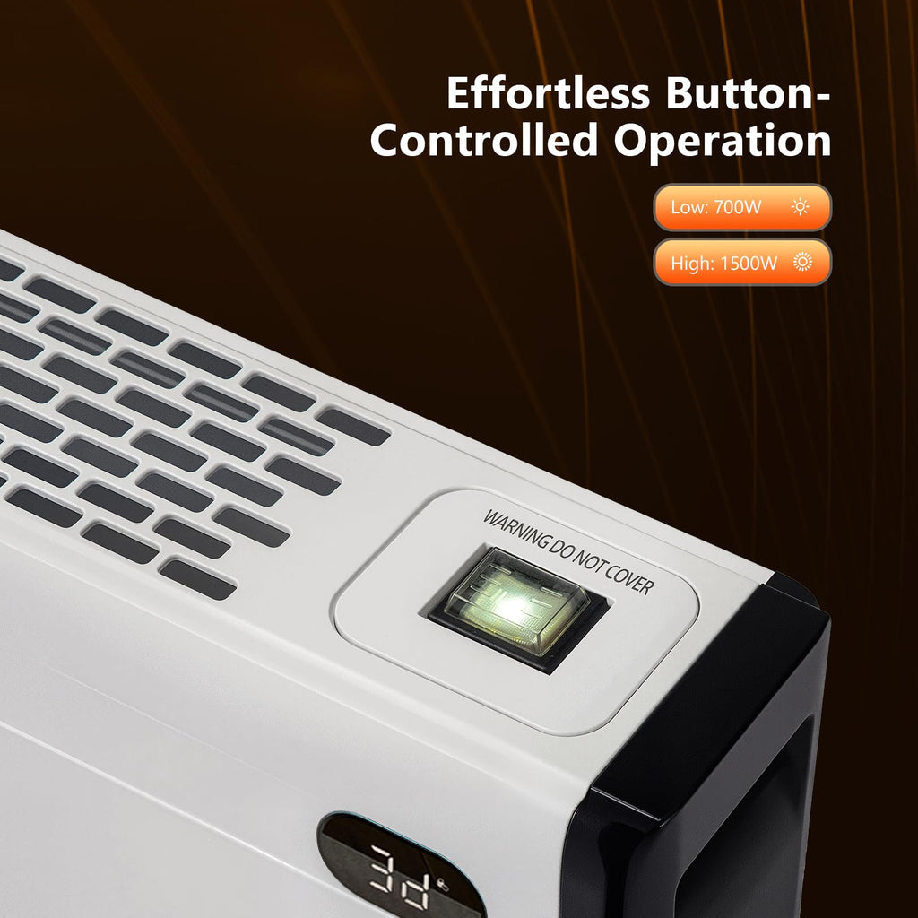 4. Enhanced Safety Features: This baseboard heater includes dual protections, featuring a tip-over safety mechanism that automatically powers off the unit if it is accidentally knocked over. And Child lock ensuring safe use for families with children and pets.