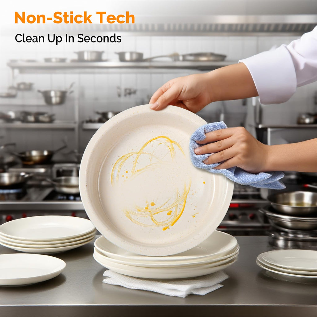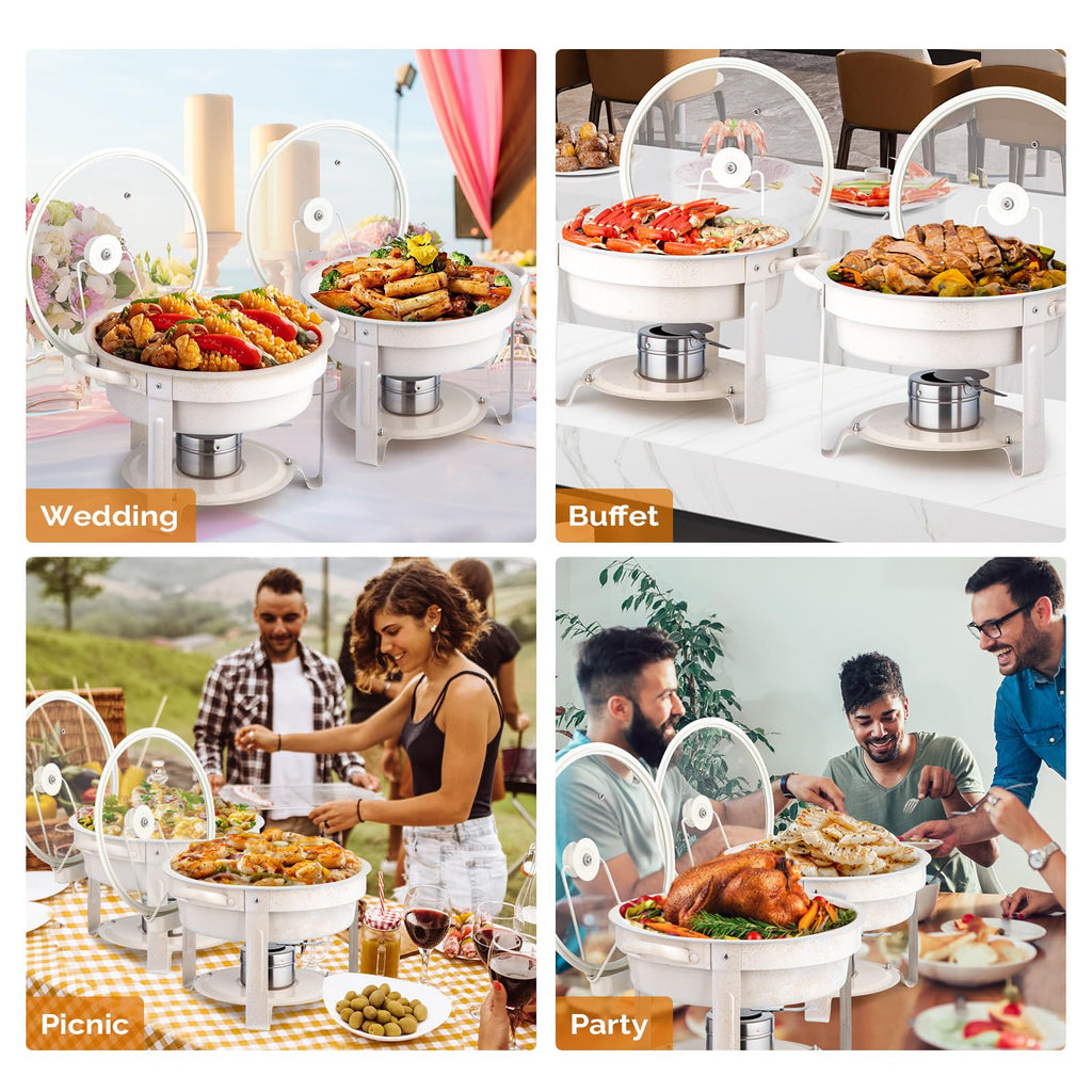 3. Super Easy to Clean and Set Up: The natural Maifanite coating is non-stick, so it can be effortlessly cleaned in just 10 seconds—saving you time during post-event cleanup. It leaves no stubborn grease buildup, making it ideal for back-to-back events. Plus, the chafing dish is quick and easy to set up; it takes just one minute to get ready.