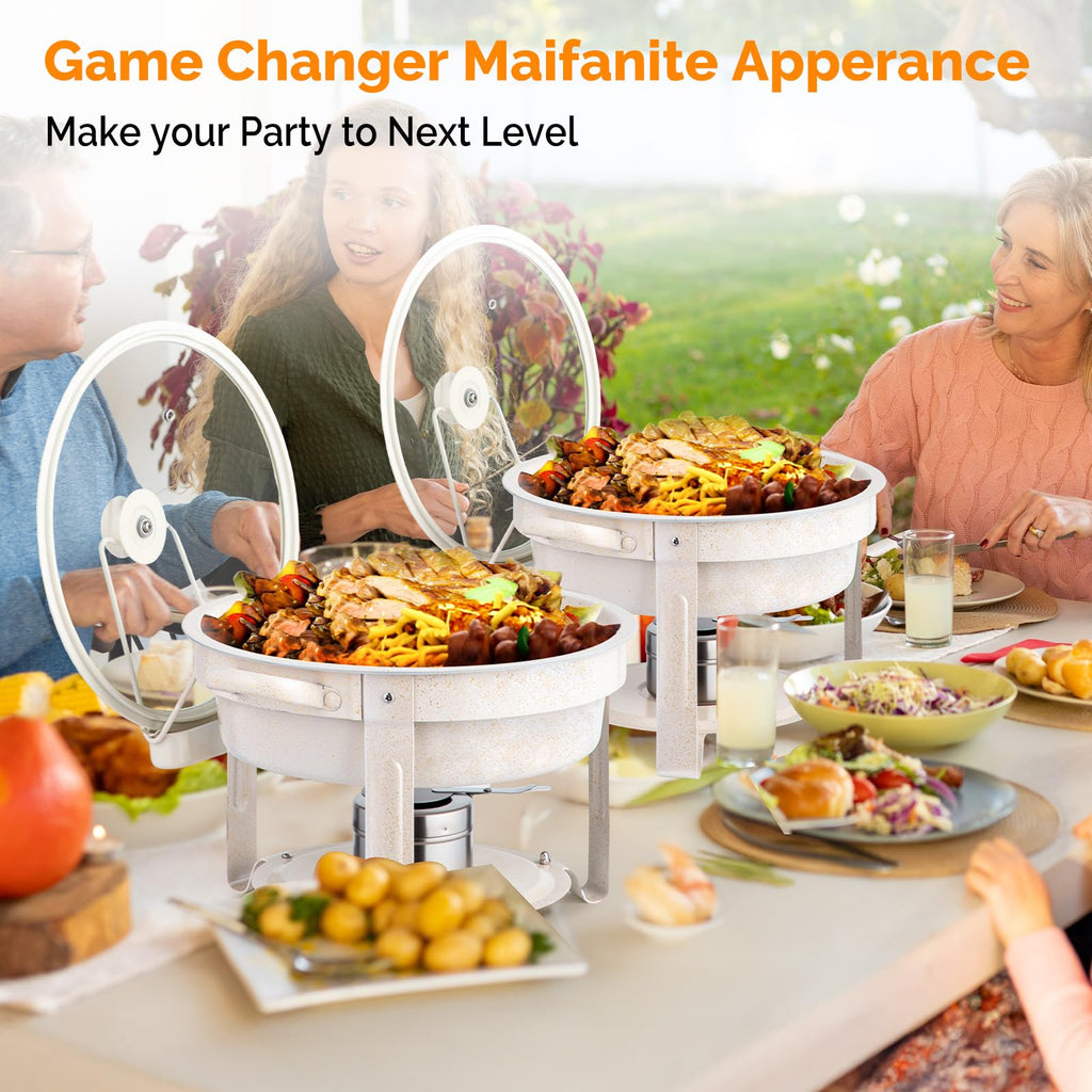 2. Excellent Food Warming Performance: The Maifanite coating retains heat 30% longer than that of standard chafing dishes, keeping food warm for up to 6 hours or more. It also features a fully sealed glass lid with a wide silicone band, creating an airtight space that locks in moisture and flavor. This ensures your dishes stay fresh and delicious—perfect for parties, weddings, and catering events!