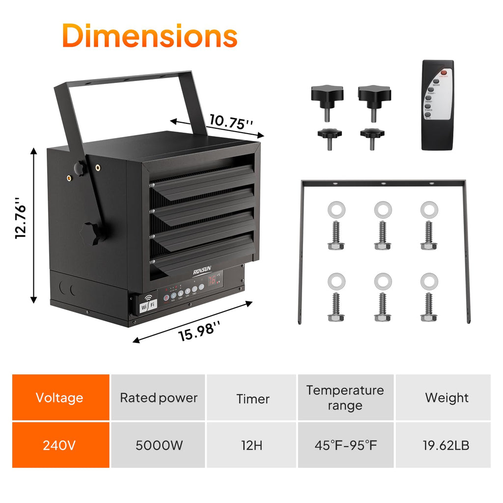 ROVSUN Electric Garage Heater with Remote & APP Control Manual