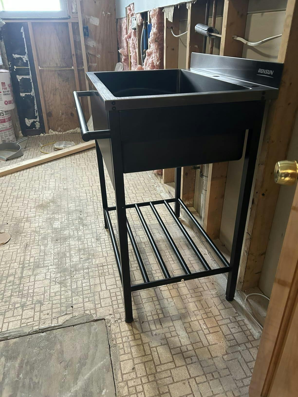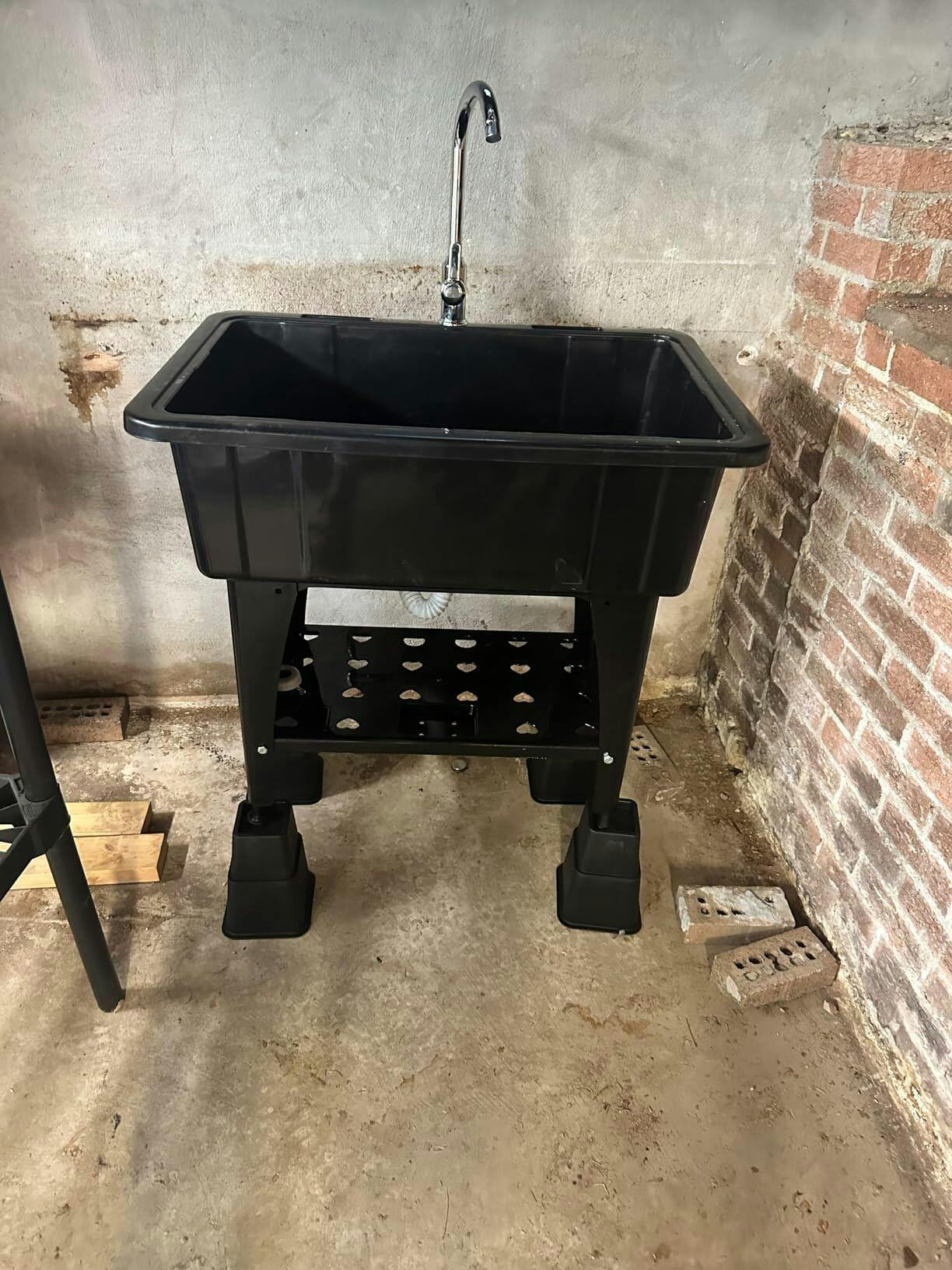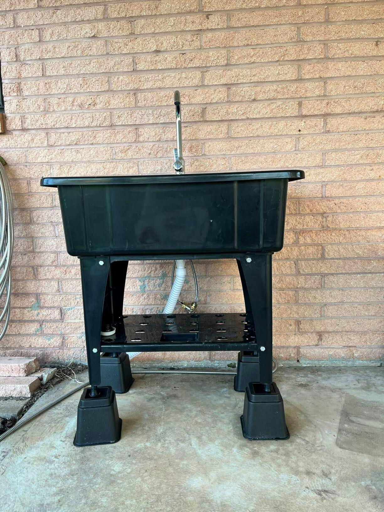 4. Thoughtful Design: Sturdy legs make this utility sink stand firmer. Thanks to its 4 levelers which keep sink stable on uneven floors. The center of the bottom sinks slightly to facilitate drainage.